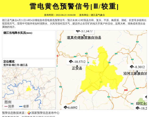 德江县气象台继续发布雷电黄色预警信号[Ⅲ/较重]