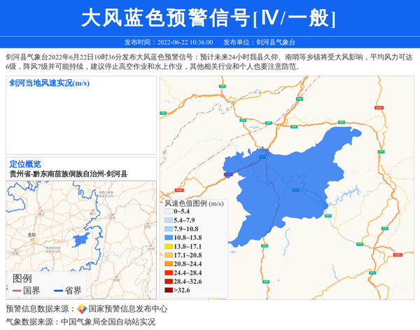 剑河县气象台发布大风蓝色预警信号[Ⅳ/一般]