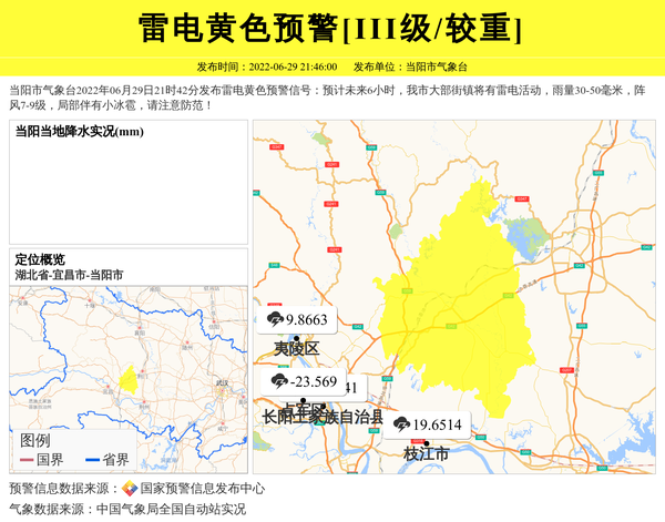 当阳市气象台发布雷电黄色预警[III级/较重]