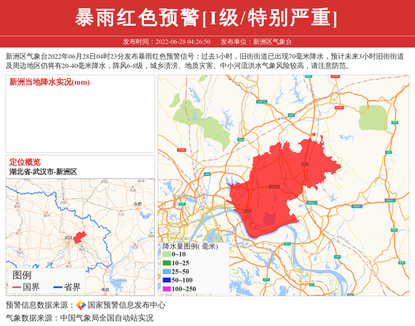 新洲区气象台发布暴雨红色预警[I级/特别严重] 相关文章