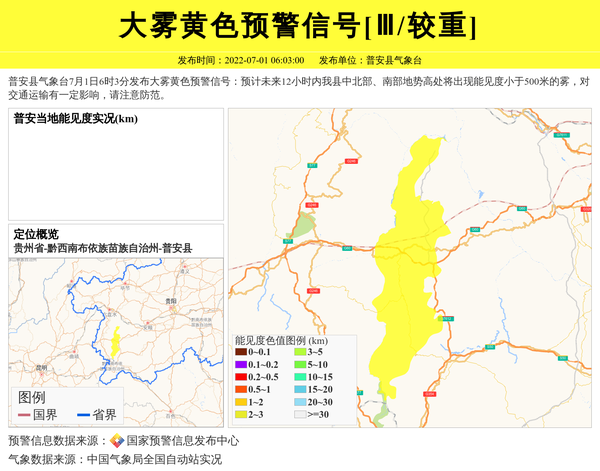 普安县气象台发布大雾黄色预警信号[Ⅲ/较重]