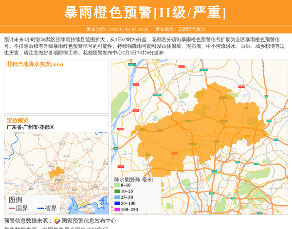 花都区气象台发布暴雨橙色预警[II级/严重]