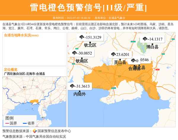 合浦县气象台更新雷电橙色预警信号[II级/严重]