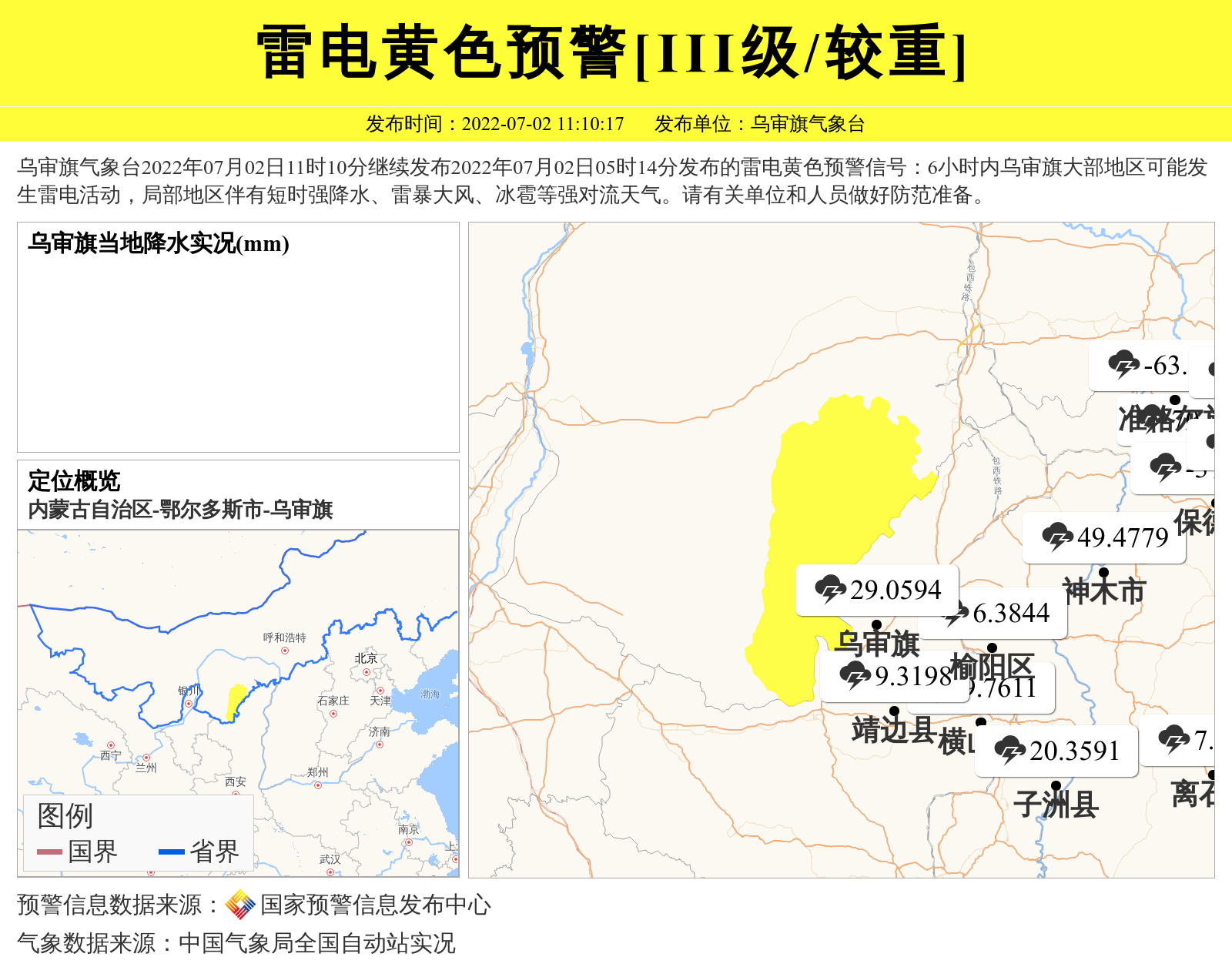 乌审旗气象台发布雷电黄色预警[III级/较重]