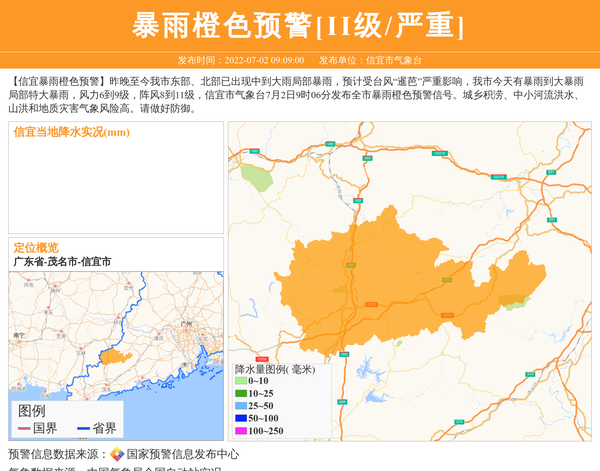 信宜市气象台发布暴雨橙色预警[II级/严重]
