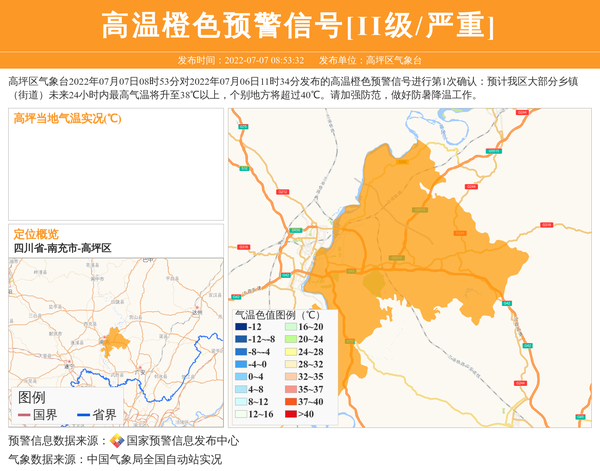 高坪区气象台更新高温橙色预警信号[II级/严重]