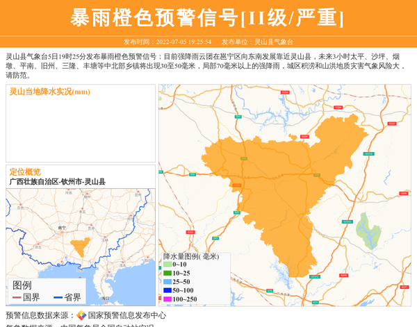 灵山县气象台发布暴雨橙色预警信号[II级/严重]