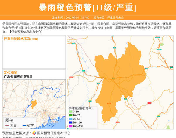 怀集县气象台发布暴雨橙色预警[II级/严重]