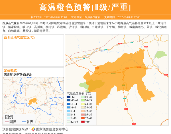西乡县气象台继续发布高温橙色预警[Ⅱ级/严重]