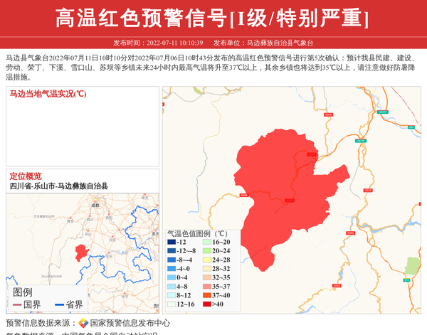 马边彝族自治县气象台更新高温红色预警信号[I级/特别严重]