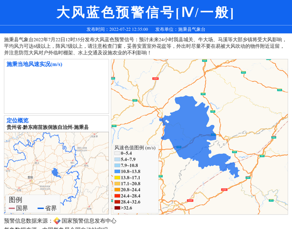 施秉县气象台发布大风蓝色预警信号[Ⅳ/一般]