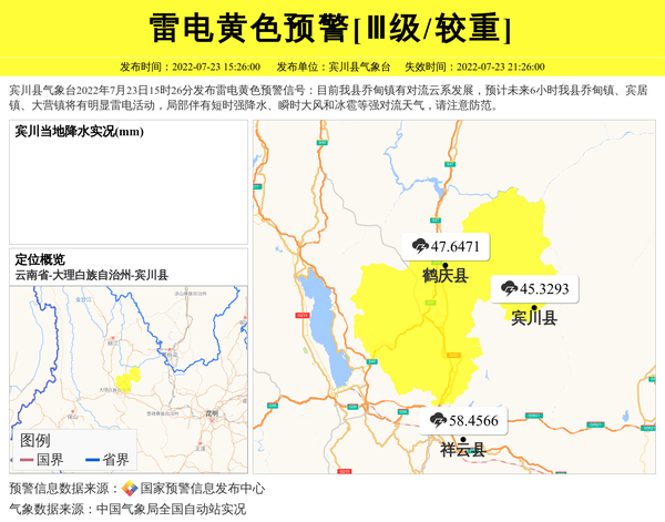 宾川县气象台发布雷电黄色预警[Ⅲ级/较重]