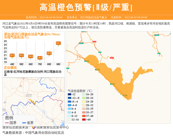 河口瑶族自治县气象台发布高温橙色预警[Ⅱ级/严重]