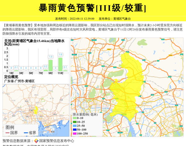 黄埔区气象台发布暴雨黄色预警[III级/较重]