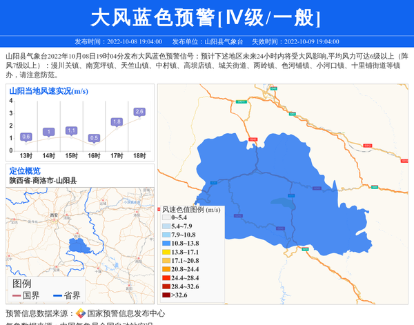 山阳县气象台发布大风蓝色预警[Ⅳ级/一般]