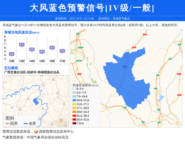 恭城县气象台更新大风蓝色预警信号[IV级/一般]